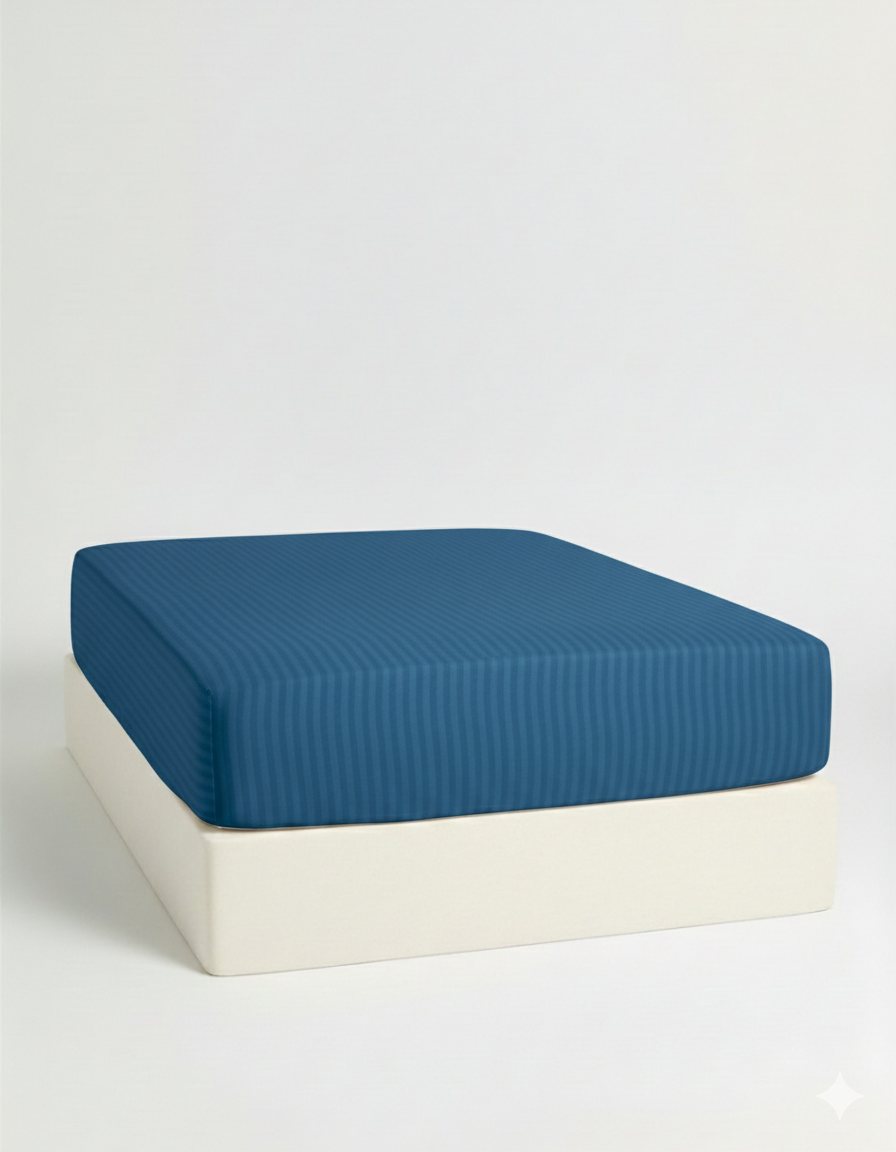 La brillance subtile du satin apporte une lumière douce à l’ensemble, idéale pour créer une ambiance raffinée et paisible dans la chambre. Les rayures discrètes ton sur ton renforcent cet effet de délicatesse et de sobriété.