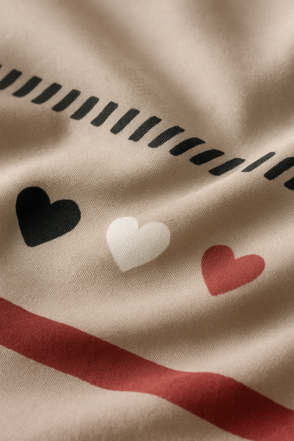 Note : Le motif est présent sur les deux faces du tissu, gage d’une finition soignée et d’un rendu uniforme. Les photos sont à titre illustratif — de légères variations de teinte ou de placement peuvent apparaître selon la coupe du tissu.