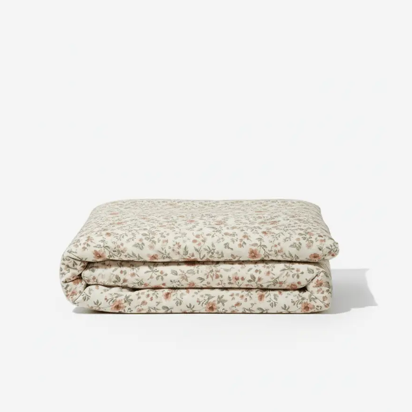 Les motifs floraux, discrets et inspirés de la nature, apportent une note poétique à l’ensemble, sans jamais surcharger. L’aspect mat de la percale révèle la finesse des lignes et crée une ambiance apaisante, douce à l’œil comme au toucher.