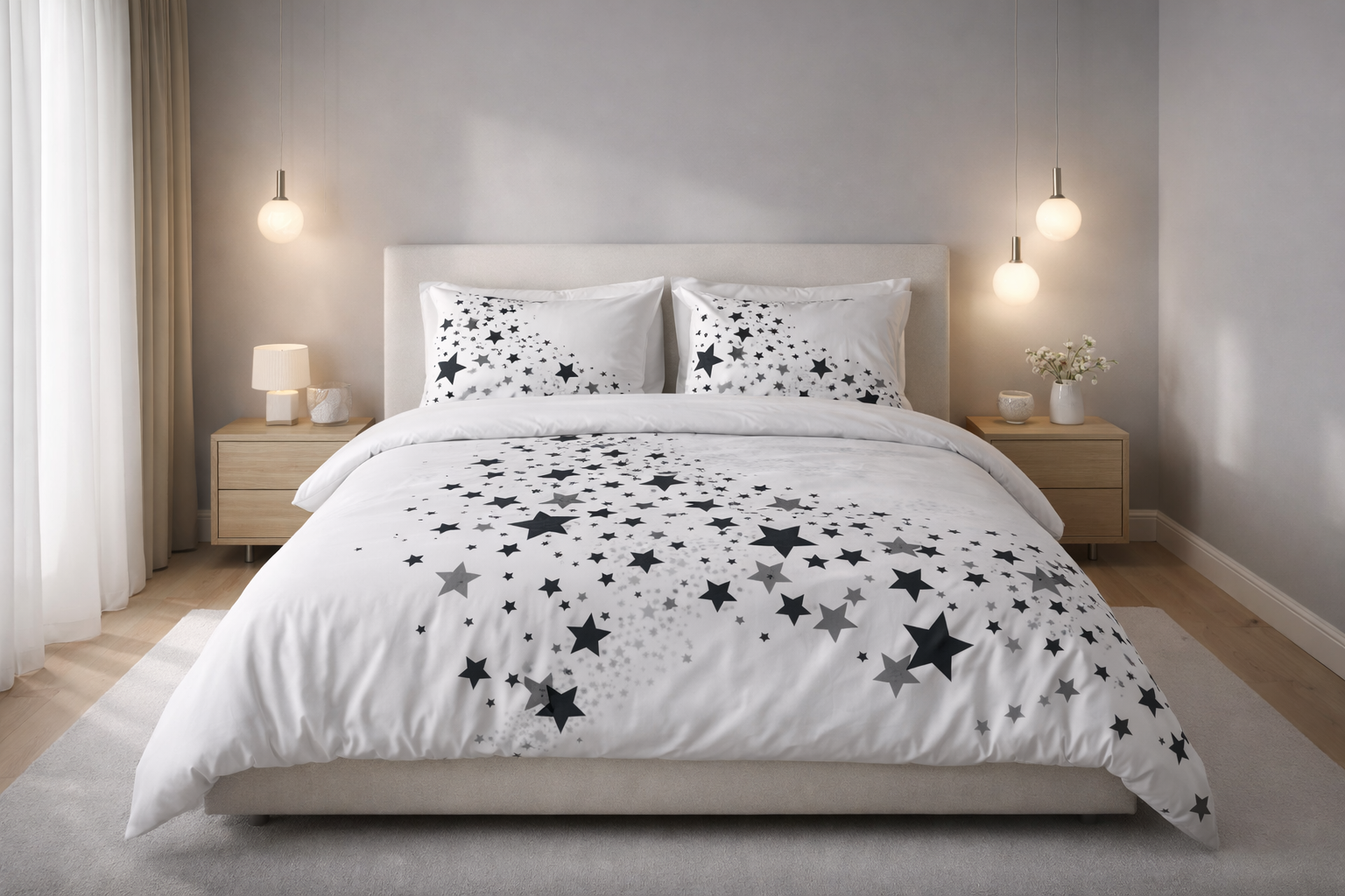 Une esthétique équilibrée et lumineuse, qui apporte une touche décorative délicate sans surcharger l’espace, pour un rendu élégant, serein et facile à intégrer dans une chambre moderne ou intemporelle.