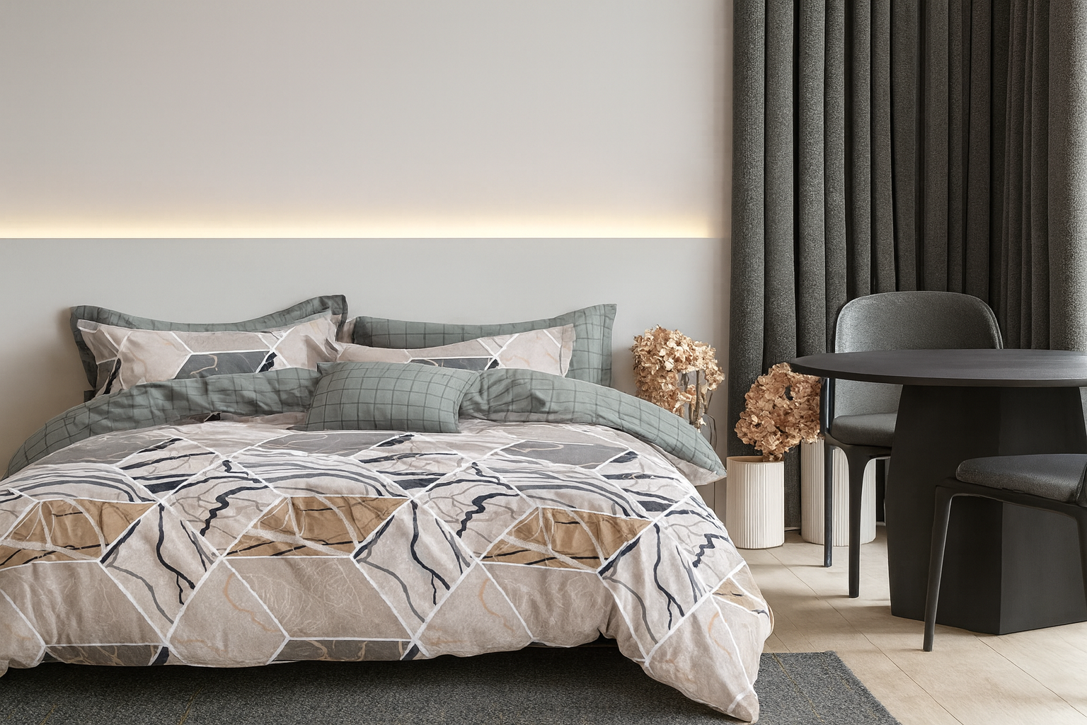 Chaque tissu est soigneusement sélectionné pour offrir confort, esthétique et longévité, afin que votre linge de lit conserve son éclat au fil du temps.